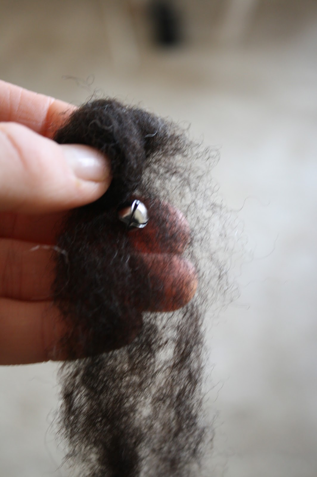 I cut a tiny hole on the top and needle felted this wool yarn onto the top for hanging.